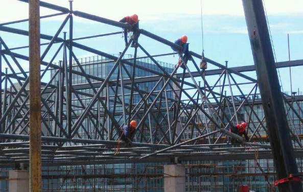 在網架結構中應用的鋼球、鋼筋以及其他根底構件需要被抬到樁架腳手架的平臺上。在貨架平臺上嚴禁一次堆放很多的備用構件。裝配吊裝時,應縱情許增加腳手架平臺上的把持人員。在失常把持過程中,腳手架一跨內不患上超過1人。